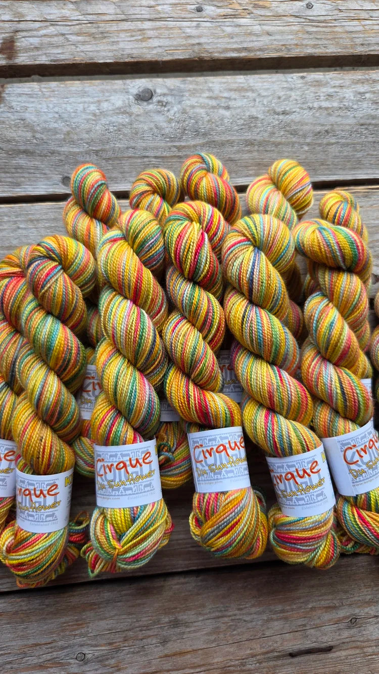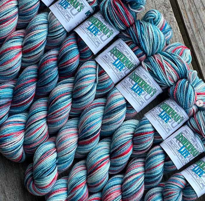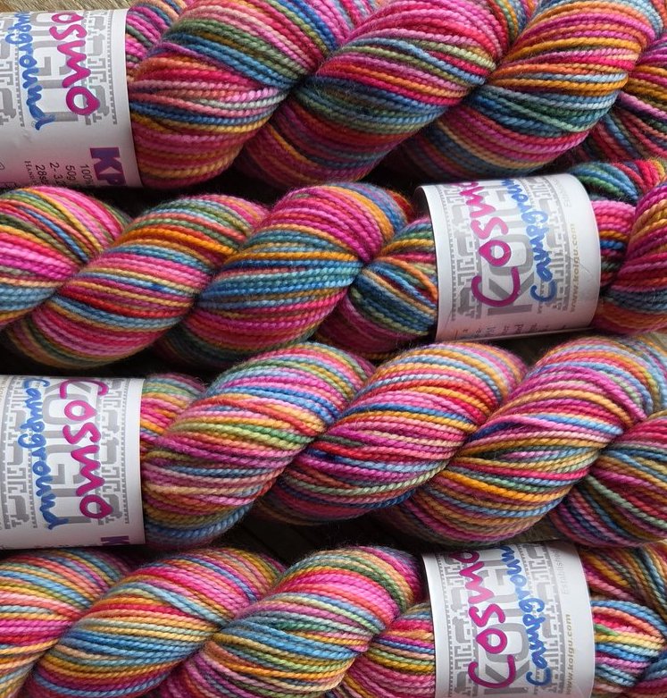 Each KPPPM skein is 175yds; 50gr. 100% merino wool, hand-painted/hand-dyed in Ontario, Canada. Fingering weight.