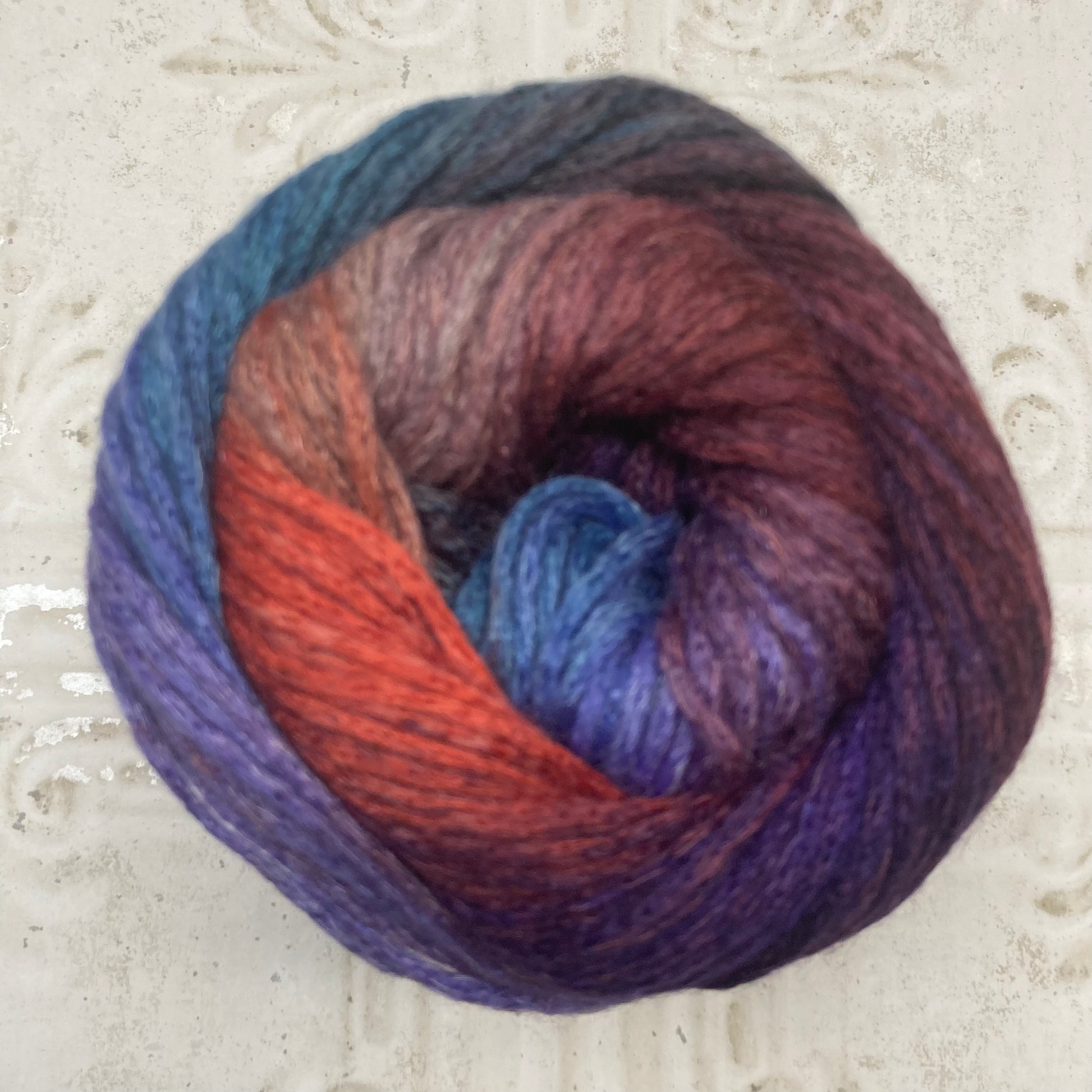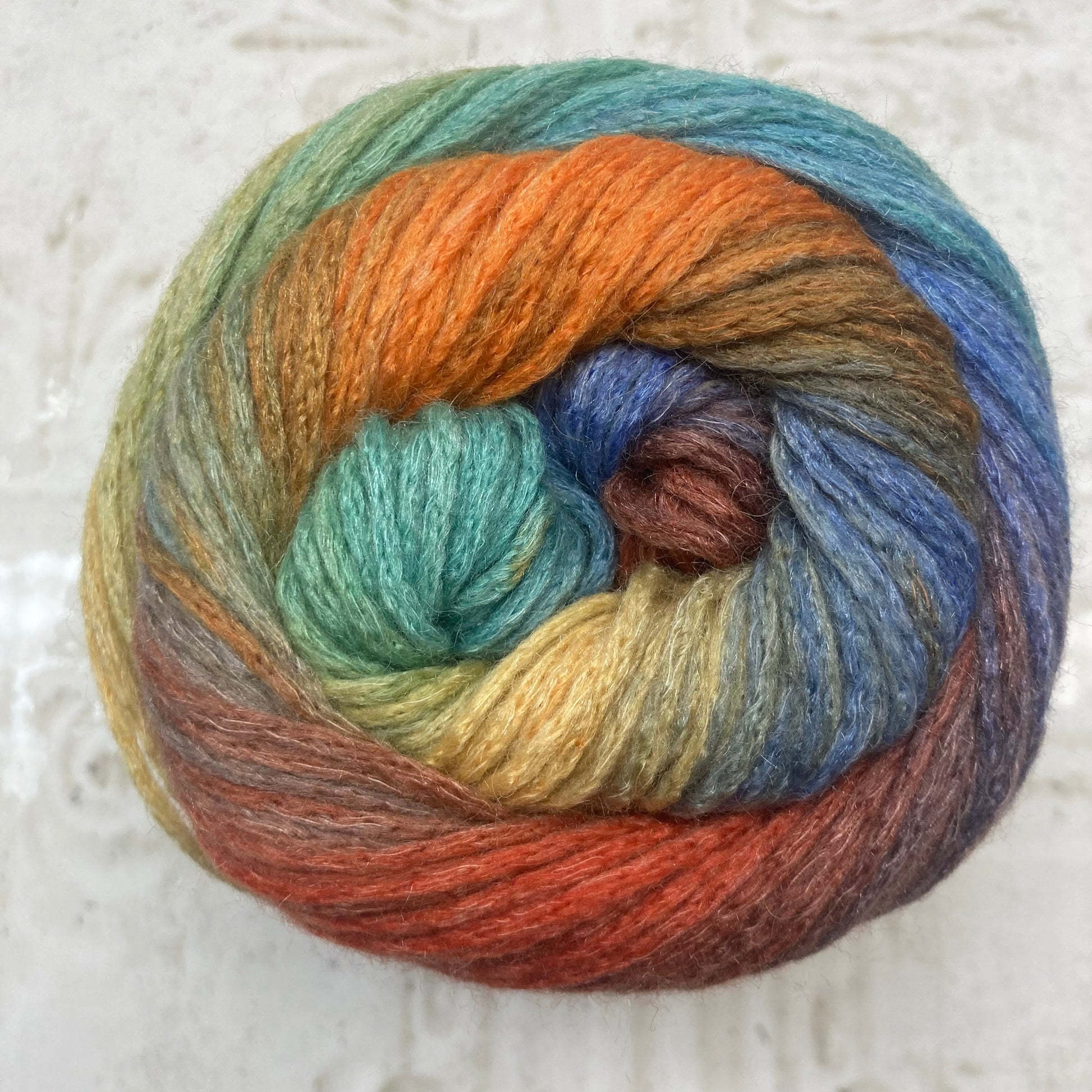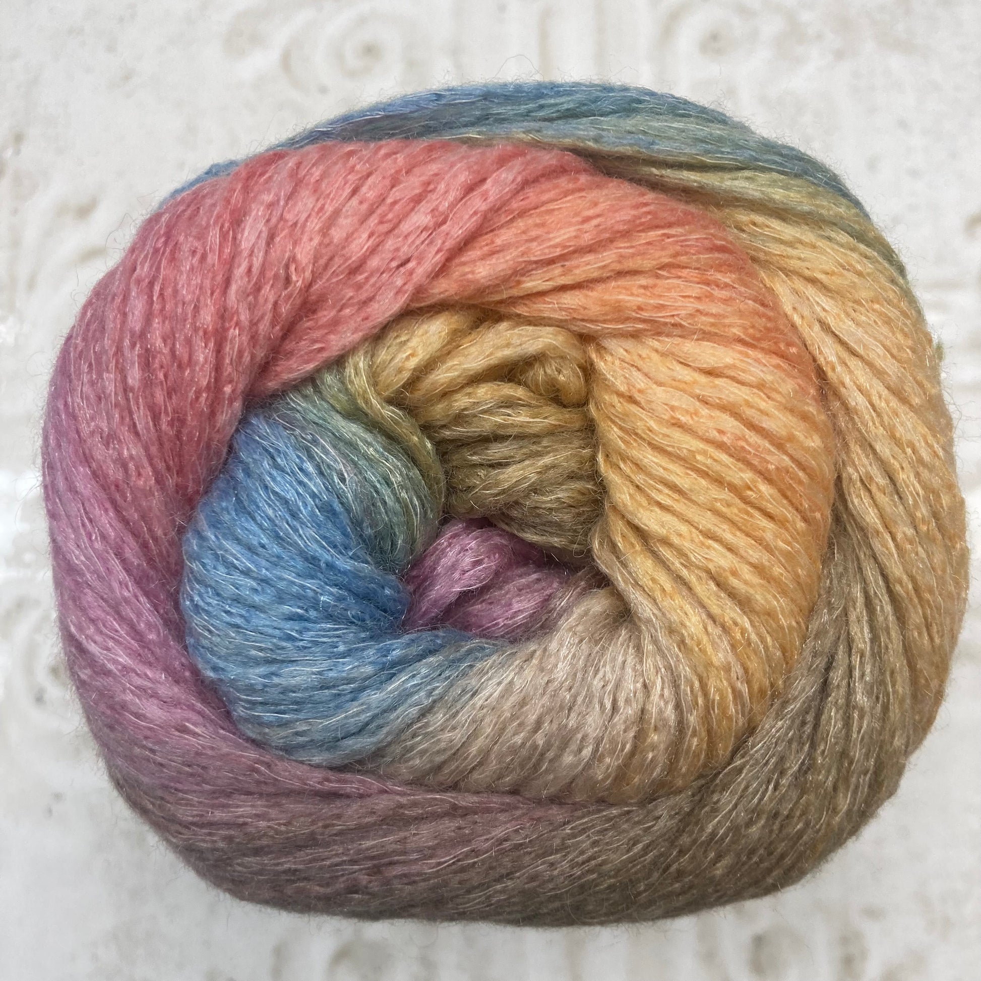 Gianna is a velvety-soft blend of Merino wool, cotton, baby alpaca and silk, with long, self-striping colour transitions. Soft, bouncy, and endlessly fun, Gianna is the perfect choice for creating warm, comfortable and colourful projects that will have you eager to work "just one more row" to see how the colours unfold.