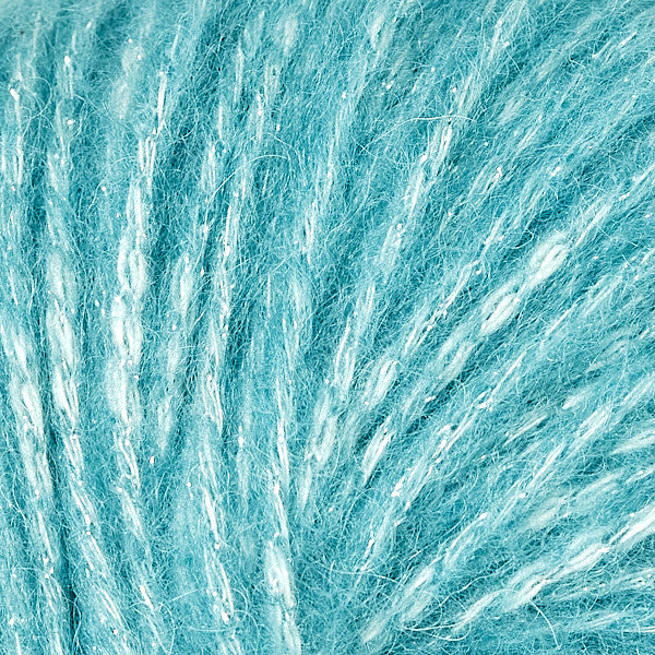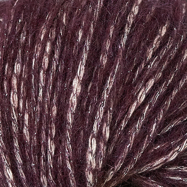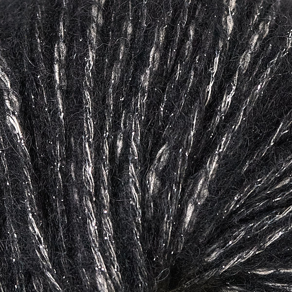 Sophisticated glam plus a soft halo make Gimlet an easy choice for elegant sweaters and accessories that need to be cozy and warm. Thanks to its blown-fibre construction, this bulky-weight yarn has a feather-light feel and will work up quickly into finished projects with a silvery, understated sparkle.