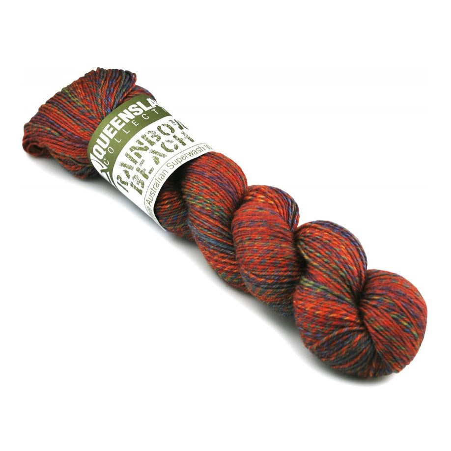 Queensland Rainbow Beach is a pure Australian superwash wool that is available in semi-solid and self-striping colours. This easy-care sport/DK yarn is great for hand-knit or crocheted tops and accessories. 100 g/328 yards. Gauge: 23-26 stitches over 10cm on 3.25-3.75mm needles. Winding required.