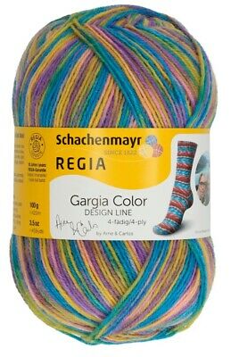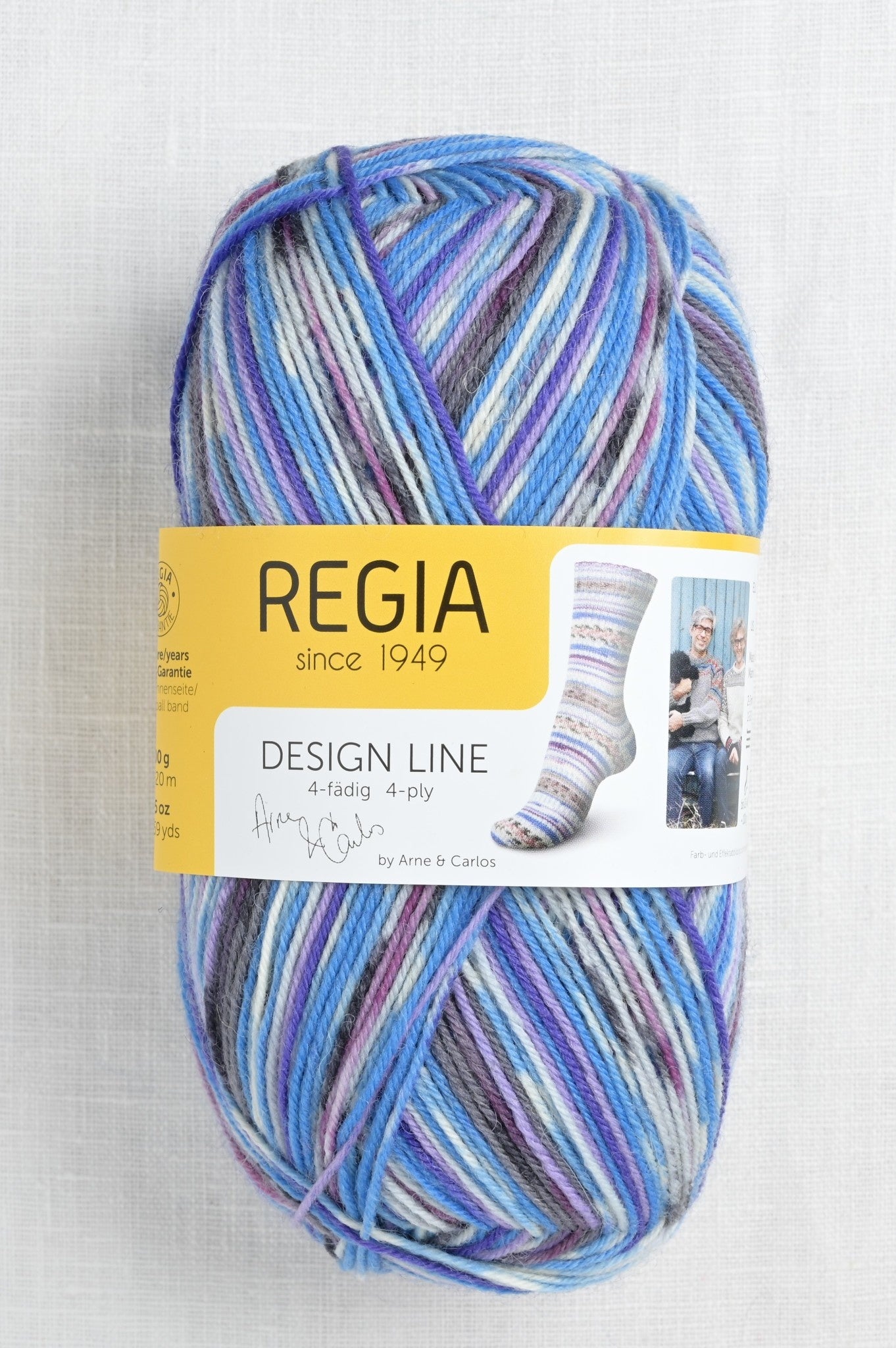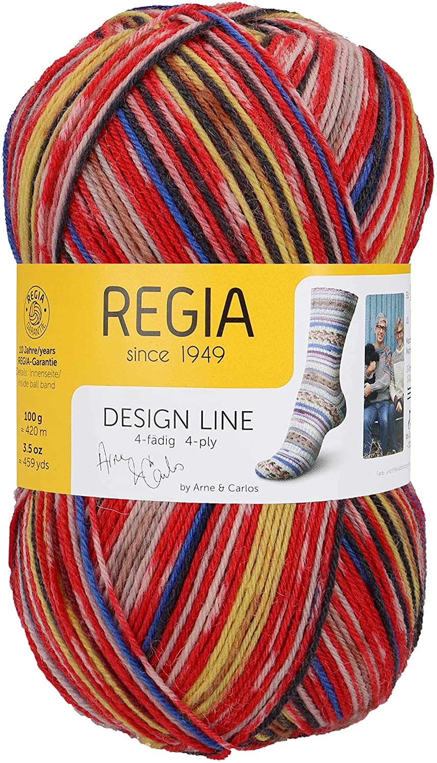 Self-patterning sock yarn. Fingering weight; 75% Wool; 25% Polyamide. 100 g/450 m; Gauge: 30 sts and 42 rows over 10cm using 2 mm - 3 mm needles.