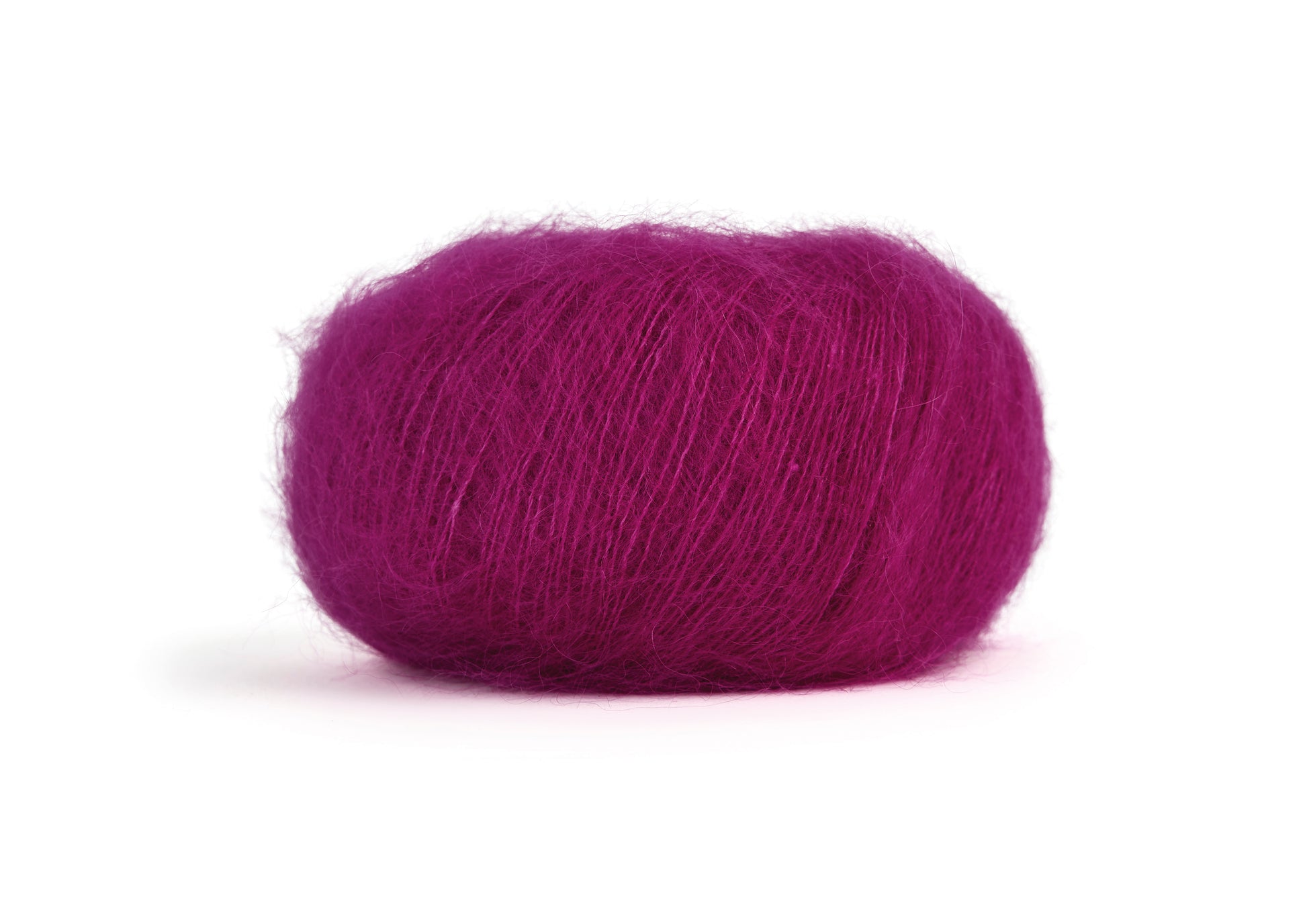 70% Mohair, 30% Silk. 25g ball. 210m. Gauge: 18 - 25 sts and 23 -34 rows over 10cm using 3.25 mm - 5 mm needles.